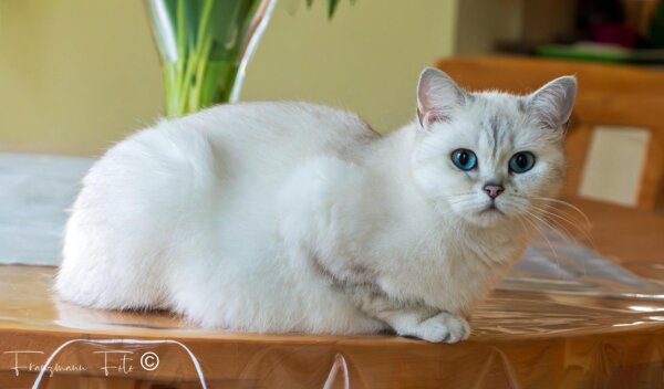 Eigentlich hatten wir andere Pläne. Aber wie so oft interessieren sich unsere Stubentiger nicht für unsere gut überlegte Planung. Als Kessy, unser Mädchen in silver-point in Hochzeitslaune war, merkte es unser Eros blitzschnell und erfüllte im Februar seine Aufgabe auch ohne besondere Aufforderung.Das werdende Bäuchlein konnte Kessy nicht lange verbergen. Und am 27.April brachte unser Fräulein Vornehm in nur 40 Minuten fünf kleine Schätzchen zur Welt. Leider mussten wir uns nach nur 5 Tagen von einem kleinen Schätzchen verabschieden. Es hatte keine Lebensenergie mehr und schlief friedlich am 2.Mai ein. Unser Kleeblatt hat sich gut entwickelt und Eros kann die Vaterschaft nicht verleugnen. Die runden Köpfchen verraten Eros Mitwirkung.